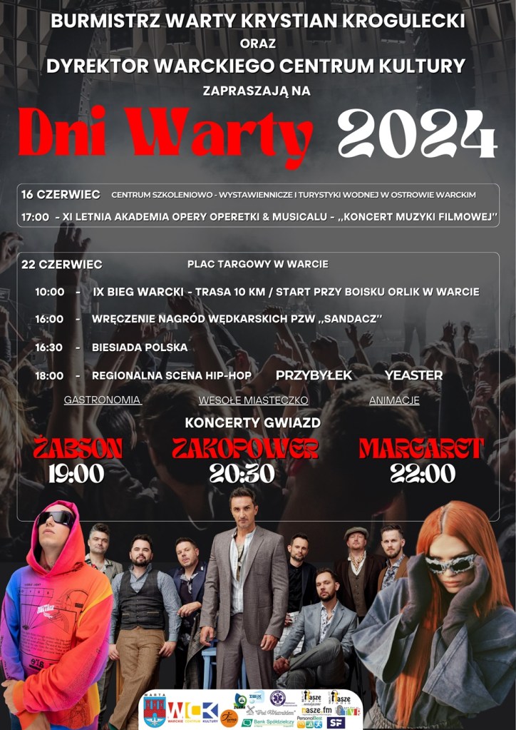 Burmistrz Warty Krystian Krogulecki oraz Dyrektor Warckiego Centrum Kultury zapraszają 22 czerwca na Dni Warty. Wydarzenie odbędzie się na Placu Targowym w Warcie.