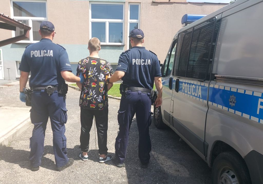 Poszukiwaniem sprawców zajęli się mundurowi. Dyżurny natychmiast zaangażował policyjne patrole, aby ich namierzyć, przekazał również komunikaty policjantom z ościennych komend. Jak się później okazało sprawcy skradzionym samochodem pojechali na teren powiatu kluczborskiego. Tam w miejscowości Bogdańczowice nie zatrzymali się do kontroli drogowej ignorując nadawane przez mundurowych sygnały. Policjanci natychmiast rozpoczęli za nimi pościg. Sprawcy porzucili samochód i kontynuowali dalej ucieczkę pieszo. Finalnie cala trójka została zatrzymana jeszcze tego samego dnia, na ternie miasta Kluczbork przez policjantów z Olesna. Sprawcami okazali się być 18- letni mieszkaniec gminy Biała, 21-letnia mieszkanka Kutna oraz 23-latek z Wałbrzycha. Zatrzymani zostali przekazani funkcjonariuszom z Wielunia, którzy umieścili ich w policyjnym areszcie. Cała trójka została doprowadzona już do Prokuratury Rejonowej w Wieluniu gdzie usłyszała zarzut rozboju z użyciem niebezpiecznych przedmiotów. 23-latek dodatkowo odpowie za niezatrzymanie się do kontroli drogowej. Prokurator jeszcze dzisiaj skieruje wniosek do sądu o tymczasowe aresztowanie przestępczego trio. Zgodnie z kodeksem karnym przestępstwo rozboju z użyciem niebezpiecznego przedmiotu zagrożone jest karą pozbawienia wolności do 20 lat.