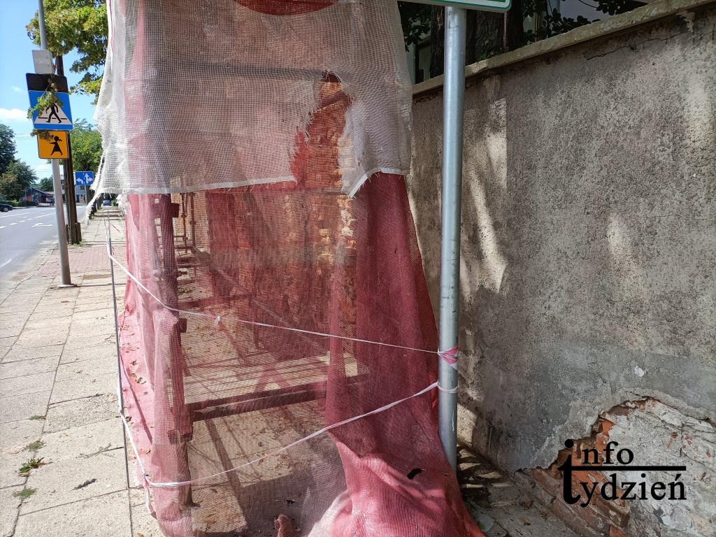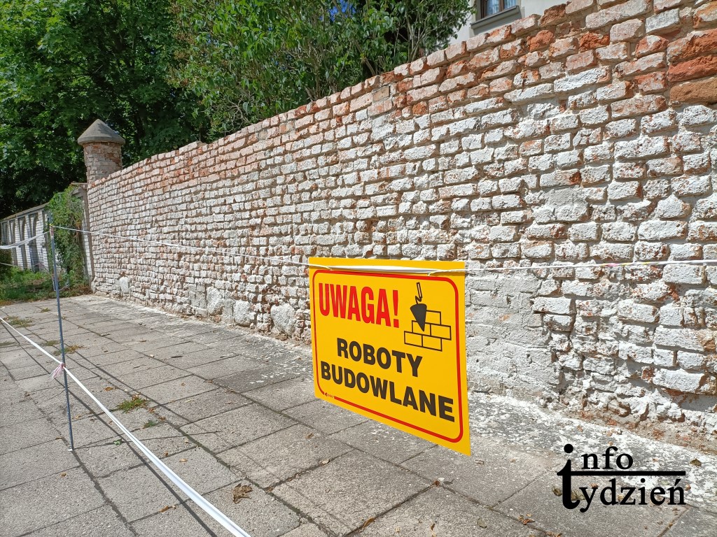 Remont dotyczy także bram wraz ze słupami. Tutaj należy być ostrożnym, korzystając z chodnika przy klasztorze.