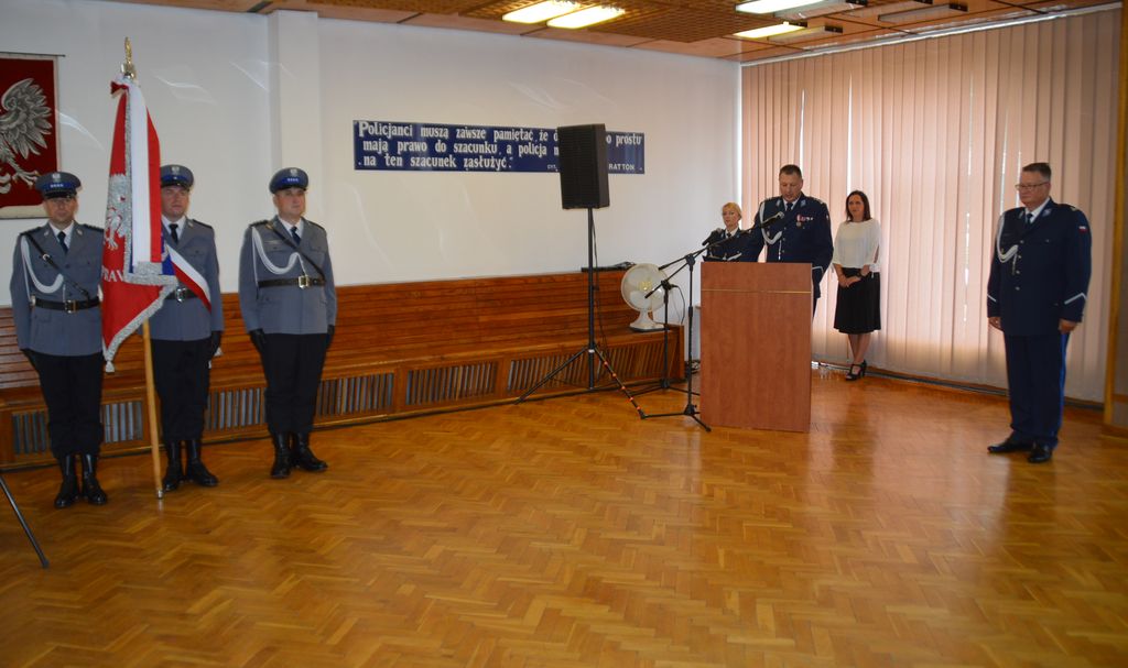 Uroczysta zbiórka rozpoczęła się od złożenia meldunku Zastępcy Komendanta Wojewódzkiego Policji w Łodzi, insp. Andrzejowi Patrzałkowi przez dowódcę uroczystości. Gospodarz uroczystości, Komendant Powiatowy Policji w Wieluniu podinsp. Grzegorz Kurek przywitał zaproszonych gości oraz policjantów i pracowników tutejszej komendy, a następnie wygłosił przemówienie okolicznościowe. Komendant w swoim wystąpieniu zwrócił uwagę na trud codziennej służby, dziękując policjantom za ich zaangażowanie. Podziękowania skierował również do pracowników Policji, którzy swoją pracą wspierają policyjną służbę. Słowa uznania za współpracę i wspieranie inicjatyw miejscowej Policji na rzecz poprawy bezpieczeństwa popłynęły również do instytucji, służb mundurowych i podmiotów stale współpracujących z tutejszą komendą.