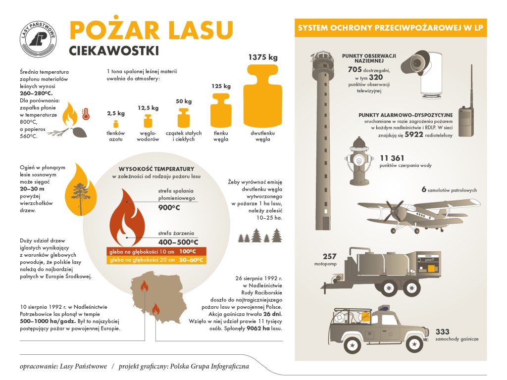 - przed podjęciem decyzji o wyciecze warto zweryfikować aktualne zagrożenie pożarowe lasu na stronie www.lasy.gov.pl bądź https://bazapozarow.ibles.pl/zagrozenie/.
