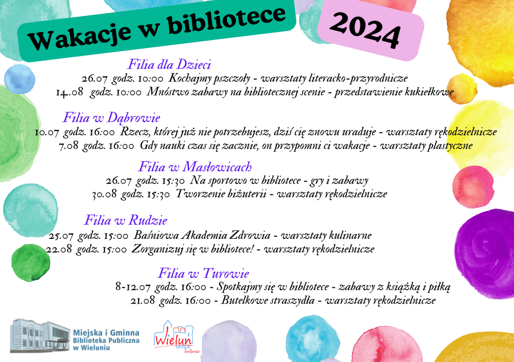 Wydarzenia odbywać się będą zarówno w głównej siedzibie biblioteki w Wieluniu, jak i w filiach w Rudzie, Dąbrowie, Masłowicach, czy Turowie.