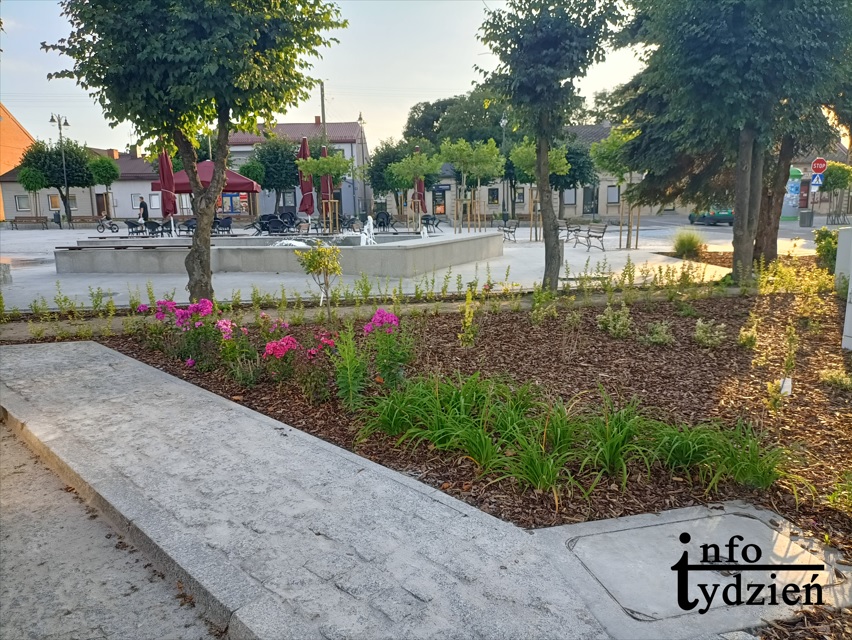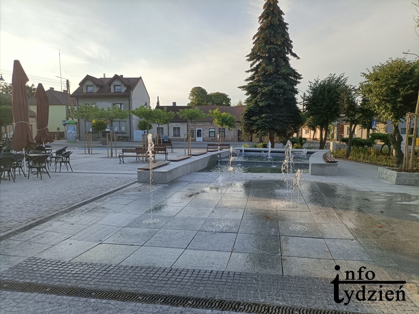Na Rynku pojawiła się fontanna, są ławki, krzesełka pod parasolem. Oko cieszy też budynek, w którym jest poczekalnia autobusowa, lokal gastronomiczny oraz toalety. Całość ozdabia ściana wodna.