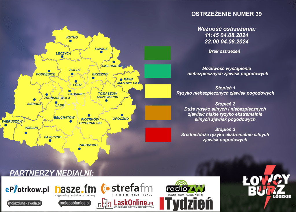 Jak informuje grupa Łowcy Burz Łódzkie – dziś w województwie łódzkim, w tym również w naszym regionie, mogą wystąpić burze.