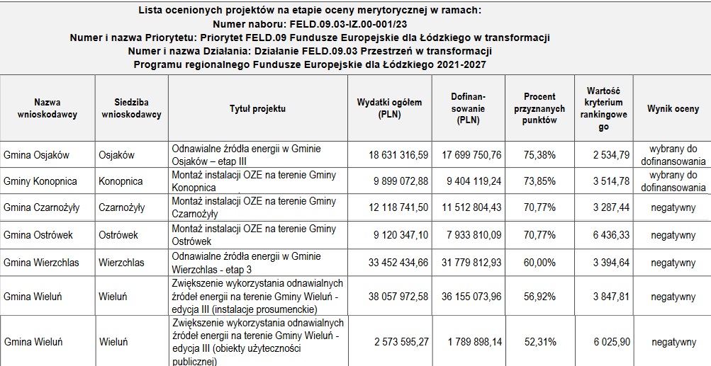Zarząd Województwa Łódzkiego zatwierdził do dofinansowania 9 projektów inwestycji w obszarze tzw. sprawiedliwej transformacji, czyli w okolicach Bełchatowa. W zakończonym konkursie można było starać się o dofinansowanie inwestycji w wytwarzanie energii elektrycznej i cieplnej z OZE oraz magazynowanie energii.