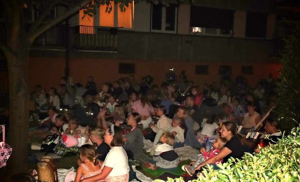W środowy wieczór odbyło się trzecie kino plenerowe na wieruszowskim podwórku! Tym razem kino zawędrowało na Osiedle Waryńskiego, tam puszczono film „Shrek 3”.
