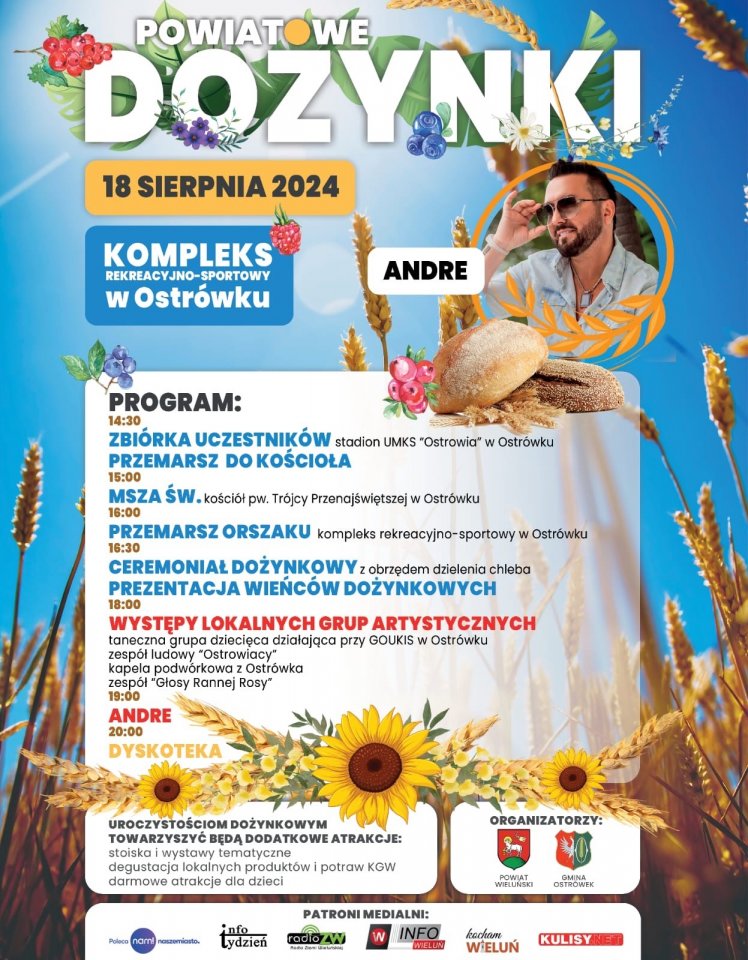 Dożynki Powiatowe w tym roku gości Ostrówek. Odbędą się one jutro, czyli 18 sierpnia. Szerzej o wydarzeniu, nad którym patronat medialny ma portal InfoTydzień piszemy TUTAJ.