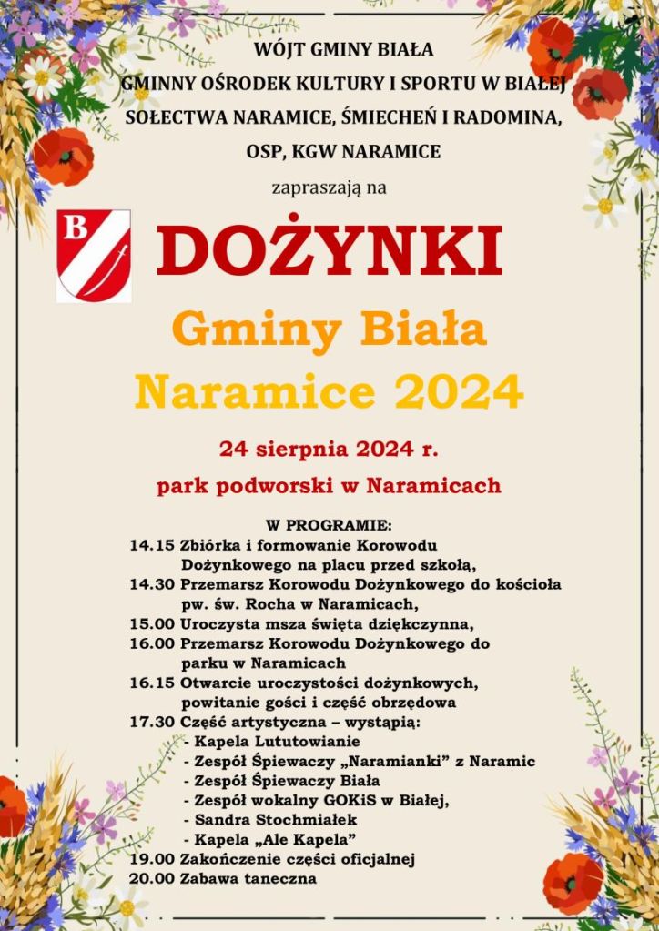 W tym roku, dożynki gminne odbędą się 24 sierpnia w parku podworskim w Naramicach.