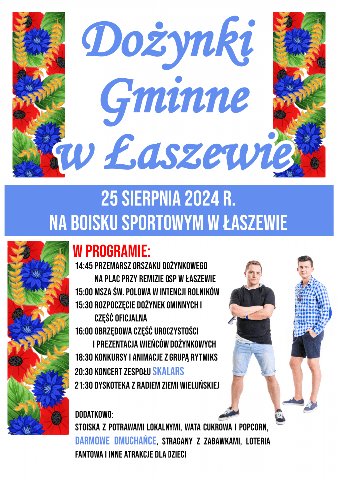 Wójt Gminy Wierzchlas zaprasza na Dożynki Gminne, które odbędą się 25 sierpnia na boisku sportowym w Łaszewie.