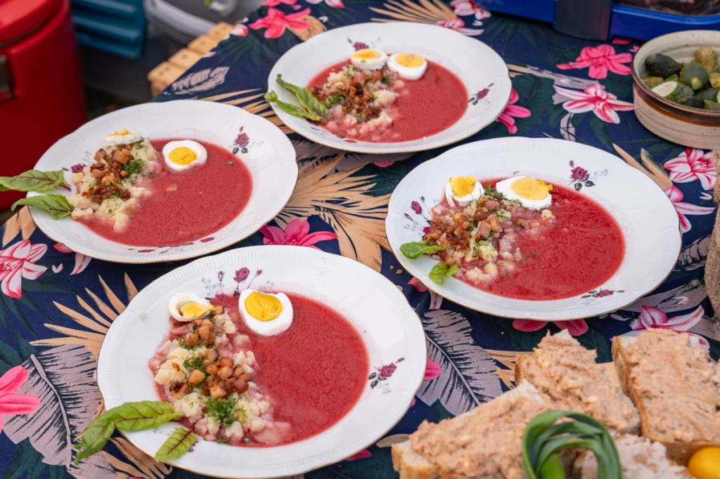 – Nasz wyjątkowy żur jest zrobiony trochę starym sposobem z przepisu koleżanki, która kiedyś była w kole gospodyń. Jest to żur na zakwasie żytnim z puree ziemniaczanym. A do puree dodałyśmy tarty chrzan i zakwas z kiszonej kapusty – mówi Marlena Bielecka z KGW w Stanisławicach.