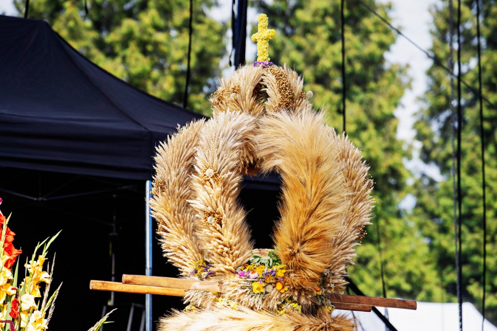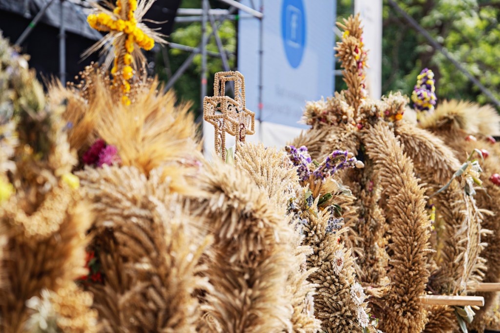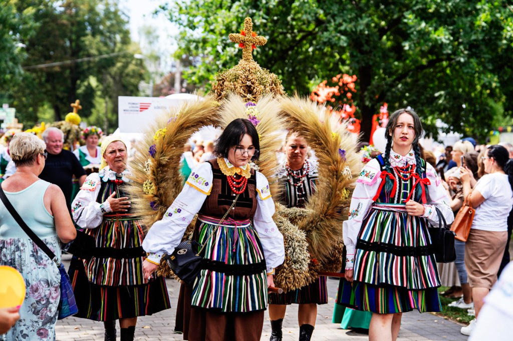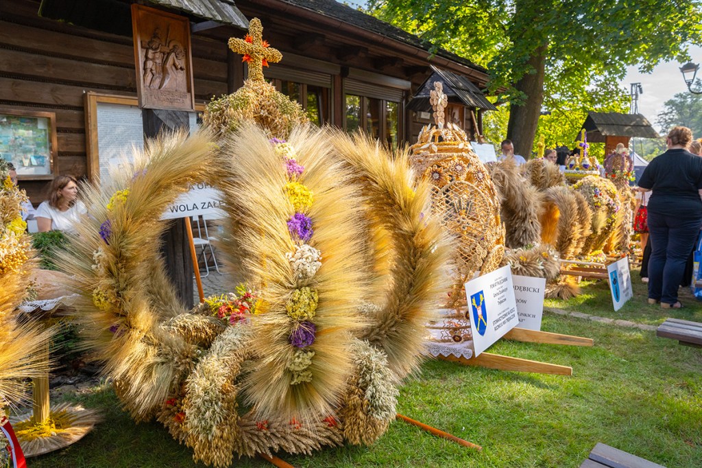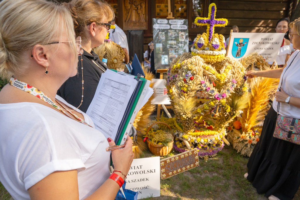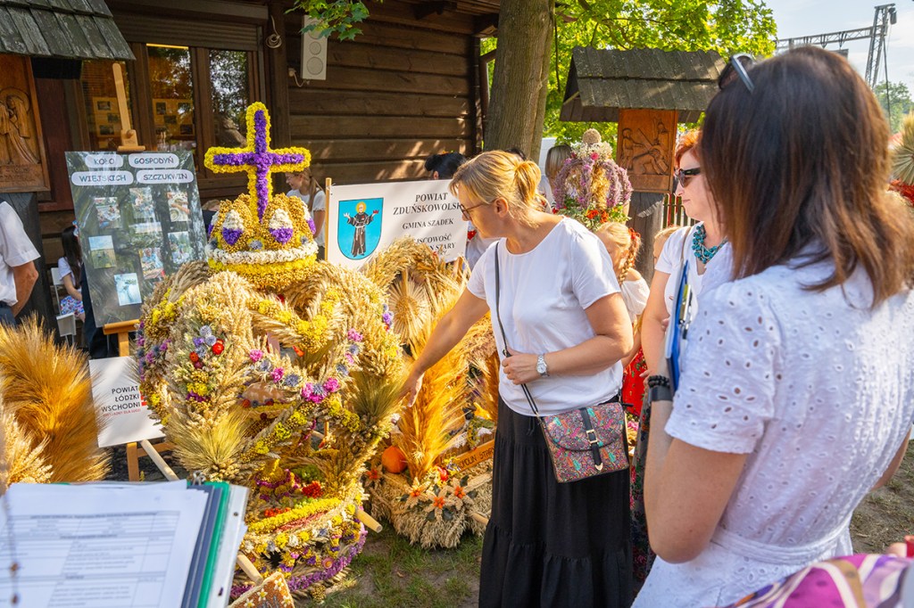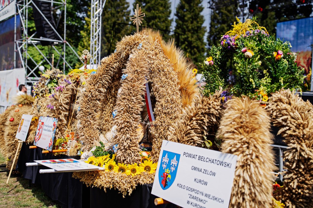 Wieńce dożynkowe to symbol święta plonów. Podczas tegorocznych dożynek wojewódzkich w Spale koła gospodyń wiejskich z całego regionu przygotowały 24 zachwycające wieńce, które przyozdobiły ołtarz podczas mszy polowej. Tradycyjnie wszystkie wzięły udział w konkursie na najpiękniejszy wieniec dożynkowy. Oceniała je komisja, w składzie której byli m.in. Monika Matusiewicz, dyrektor Gminnego Centrum Kultury w Inowłodzu, Andrzej Białkowski z Łódzkiego Domu Kultury i Monika Malinowska-Olszowy, radna Sejmiku Województwa Łódzkiego. Pod uwagę brana była zgodność kompozycji, formy i materiałów z tradycją oraz prezentacja wieńca.