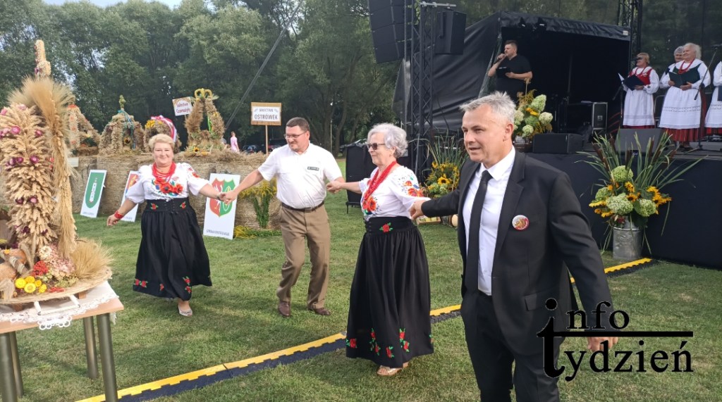 Tam miała miejsce część oficjalna. Zaprezentowano wieńce przygotowane przez sołectwa gminy Ostrówek – gospodarza dożynek powiatowych, a także te przygotowane przez wszystkie gminy powiatu wieluńskiego. Było też obowiązkowe obtańczenie wieńca, które przygotowało sołectwo Ostrówek. W dalszej części – gminy powiatu wieluńskiego i sołectwa gminy Ostrówek paradowały ze swoimi wieńcami, by następnie z rąk wójta gminy Ostrówek – Arkadiusza Banasia i starosty wieluńskiego – Macieja Brysia, odebrać pamiątkowy dyplom i upominki.