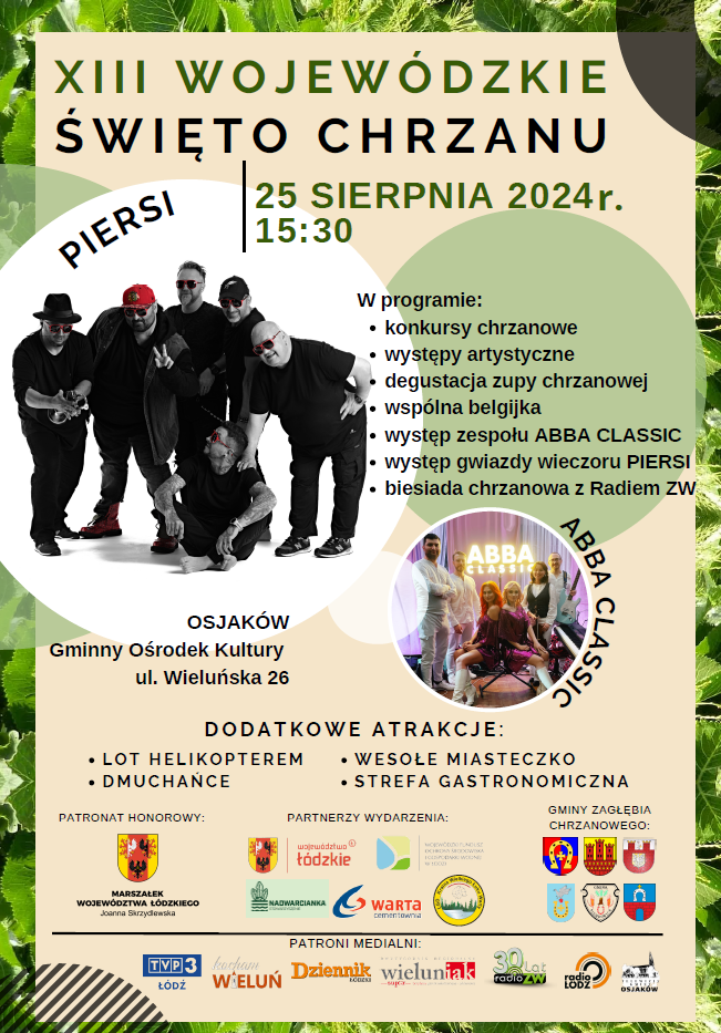 Organizatorzy przygotowali wiele atrakcji. Na scenie z kolei wystąpią zespoły ABBA Classic oraz Piersi. Więcej szczegółów na plakacie.