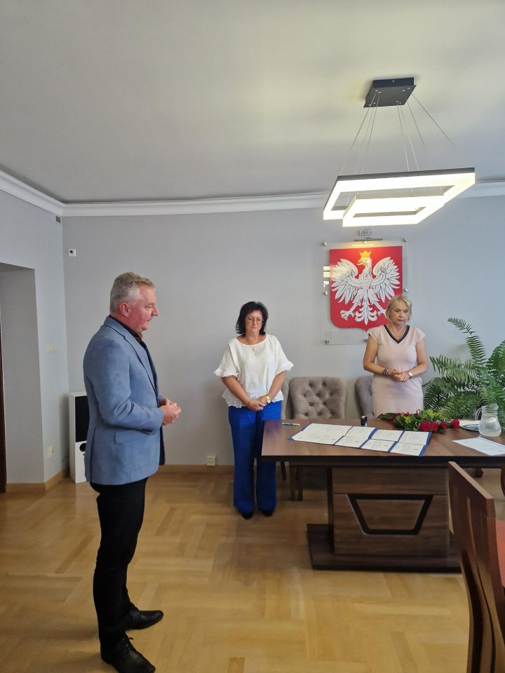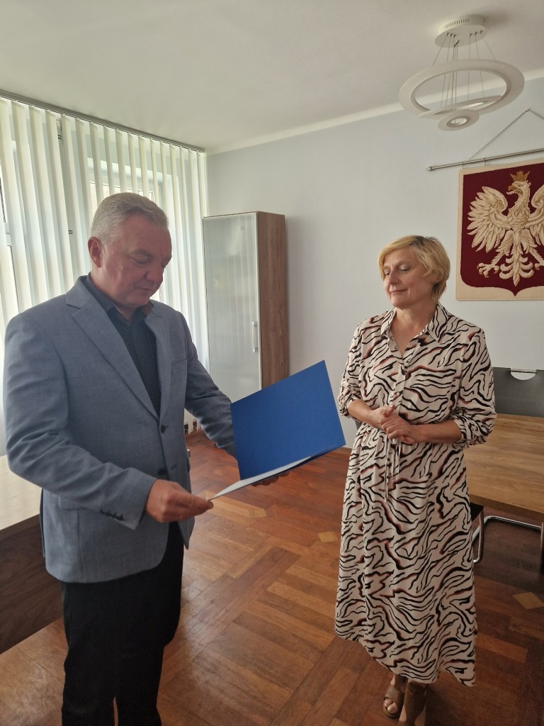Burmistrz Błaszek Piotr Świderski wręczył również akt powierzenia stanowiska dyrektora Szkoły Podstawowej we Włocinie Urszuli Michalskiej na okres od 1 września do 30 czerwca przyszłego roku.