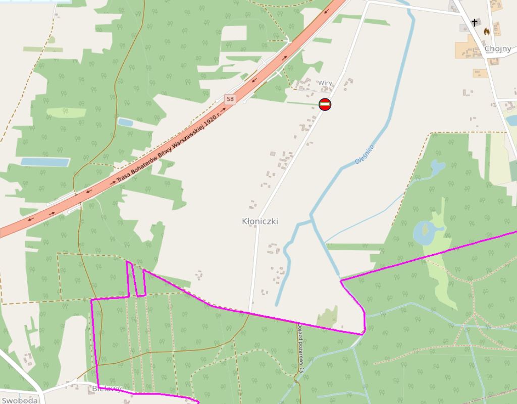 W związku z pracami remontowymi przepustu na drodze w miejscowości Kłoniczki, 24 sierpnia (sobota), odcinek drogi zaznaczony na mapie będzie czasowo nieprzejezdny.