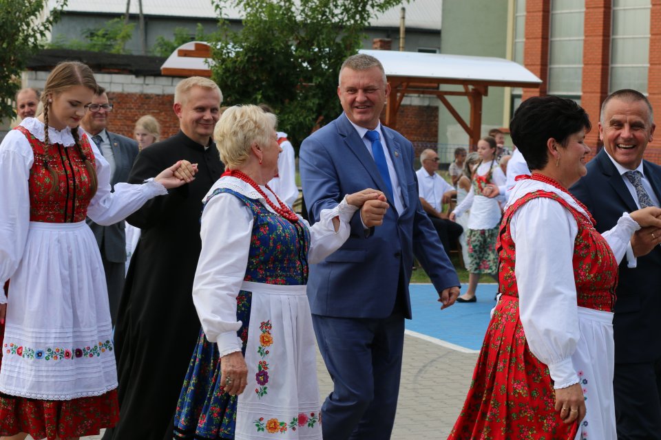 Następnie korowód dożynkowy przemaszerował na teren przy świetlicy wiejskiej gdzie odbył się tradycyjny obrzęd dożynkowy. Nie brakowało atrakcji dla uczestników imprezy. W części artystycznej odbył się koncert młodzieżowej orkiestry dętej z Burzenina oraz zespołu ludowego „MARIANKI”. Wystąpili „B-QLL”, „DISCOBOYS”, „FOLK LADY” oraz zespół „EXAITED”.