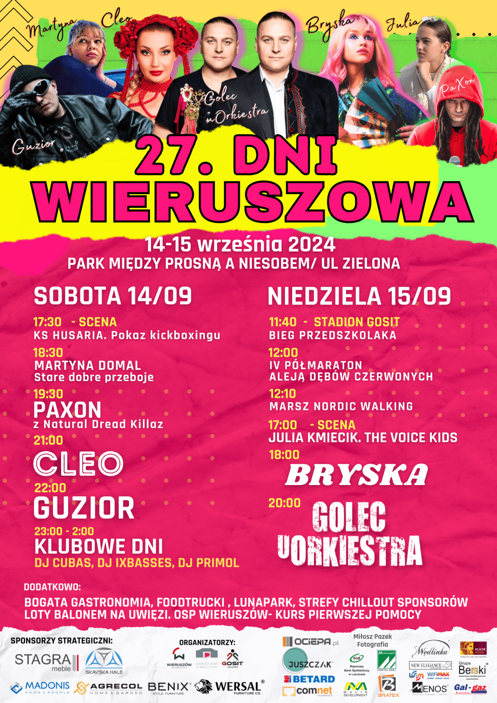 W sobotę na scenie zobaczycie: Paxona, Cleo i Guziora. Nocną imprezę z muzyką klubową zapewnią DJ Cubas, DJ Ixbasses i DJ Primol. W niedzielę – koncerty Bryski oraz Golec uOrkiestra.