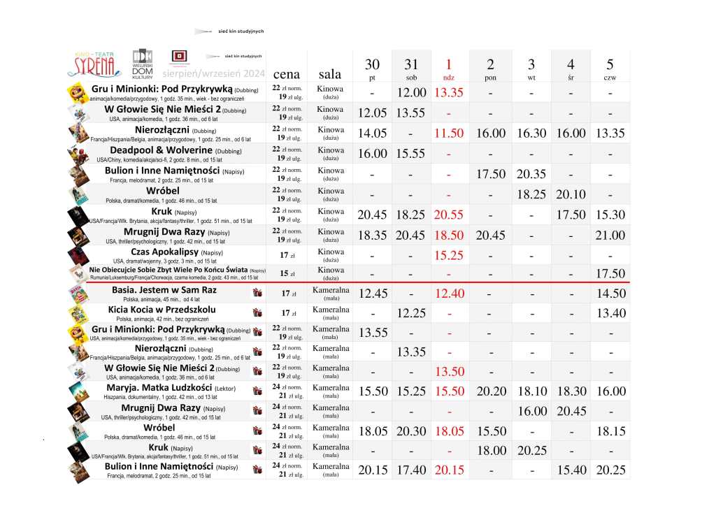 Kino Teatr „Syrena” w Wieluniu zaprasza na seanse filmowe. Na plakacie poniżej prezentujemy, co placówka przy ul. Narutowicza 2 zaprezentuje w dniach od 30 sierpnia do 5 września. Bilety można zakupić TUTAJ.