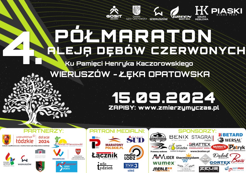 Jeszcze przez kilkanaście dni trwają zapisy IV Półmaratonu Aleję Dębów Czerwonych, którego organizatorami są: Gmina Łęka Opatowska, Gmina Wieruszów, Spółdzielnia Socjalna Green Service oraz Gminny Ośrodek Sportu i Turystyki w Wieruszowie, a sponsorem tytularnym jest HK Grupa Meblowa, Fabryka Mebli PIASKI.