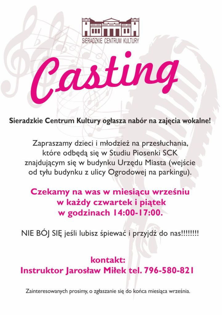 Dzieci i młodzież, chcące spróbować swoich sił ze śpiewem, mogą udać się na przesłuchania, które odbędą się w Studiu Piosenki SCK znajdującym się w budynku Urzędu Miasta (wejście od tyłu budynku z ulicy ogrodowej na parkingu).