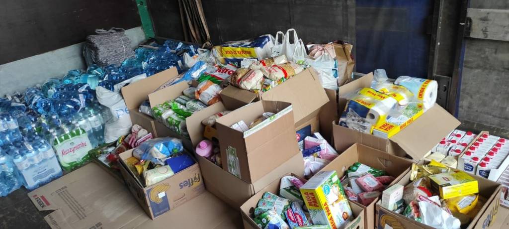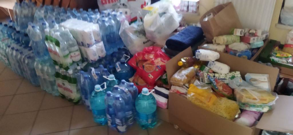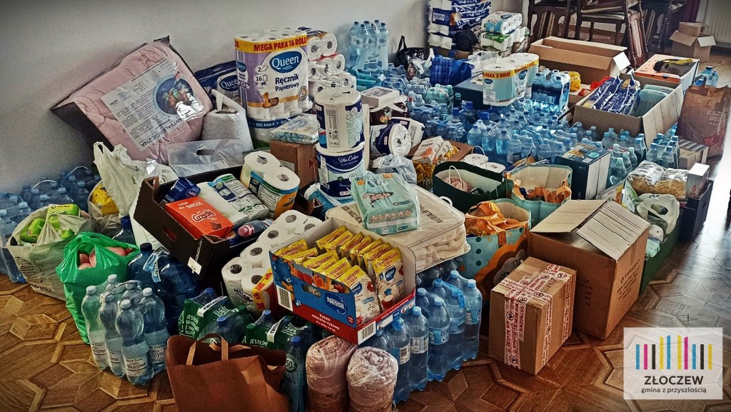 Przyjmowane są: woda pitna, suche produkty (żywność), konserwy, latarki i baterie, karmy dla zwierząt, środki codziennego użytku: (pasta do zębów, szampon, mydło, papier toaletowy, podpaski, kosmetyki, pieluchy dla dzieci, chemia gospodarcza), obuwie gumowe, koce, artykuły szkolne oraz podstawowe leki i środki opatrunkowe.