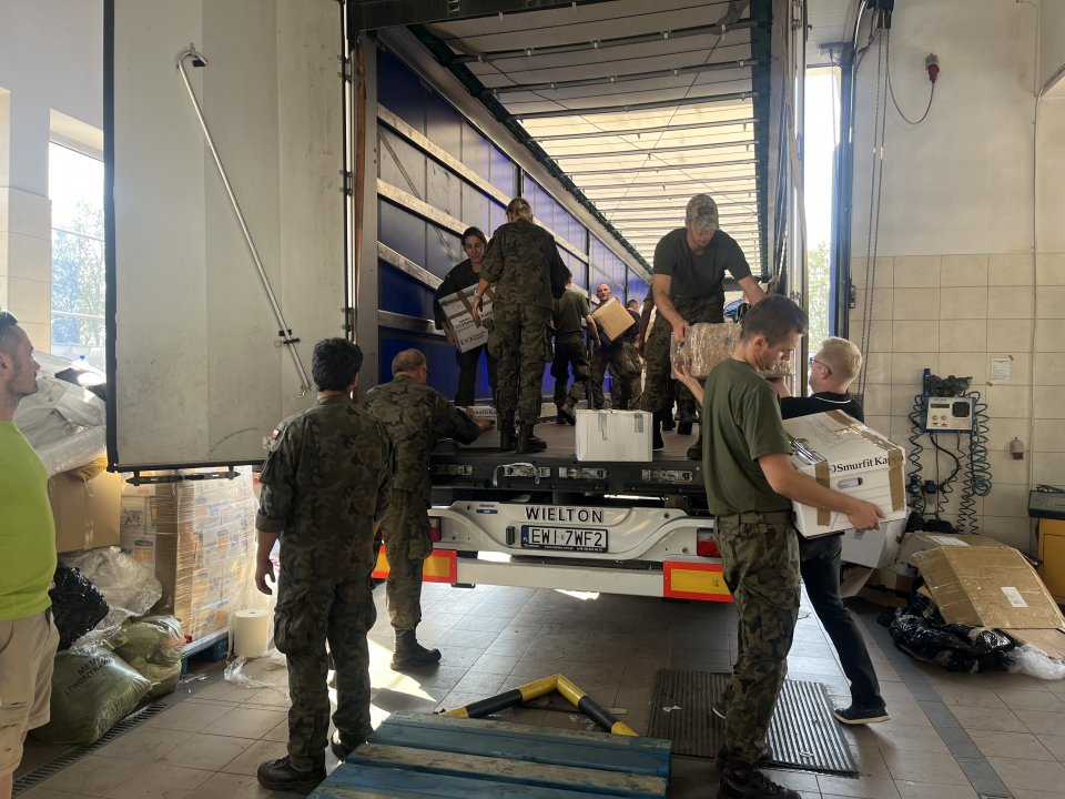 Osoby nadzorujący punkt rozładunku były bardzo zadowolone z dostarczonej chemii oraz narzędzi, które w tej chwili są najbardziej potrzebne do sprzątania skutków powodzi. Na miejscu spotkano sieradzkich policjantów, którzy zostali oddelegowani do pomocy osobom poszkodowanym przez powódź na południu Polski.