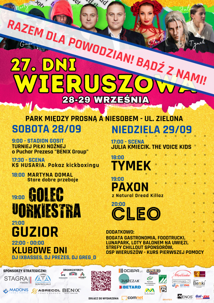 Już 28-29 września spotykamy się na 27. Dniach Wieruszowa! Zapraszamy wszystkich do wspólnej zabawy do Parku między Prosną a Niesobem przy ul. Zielonej.