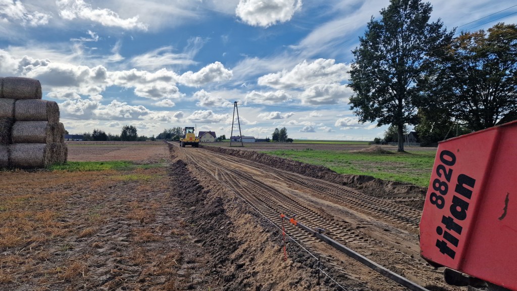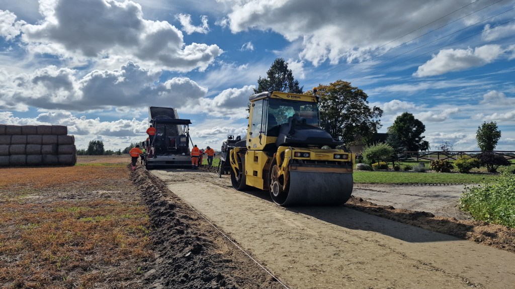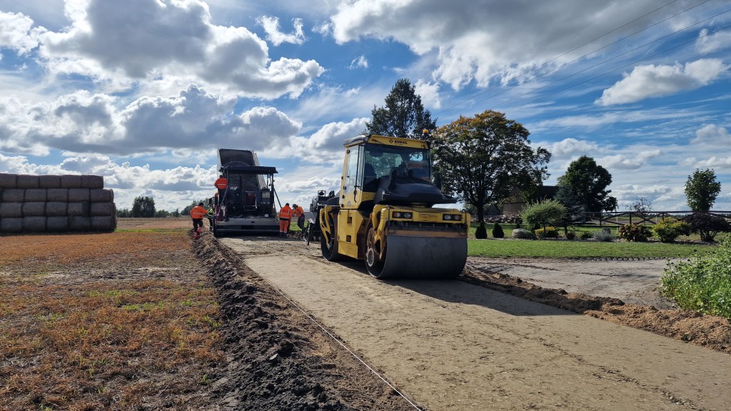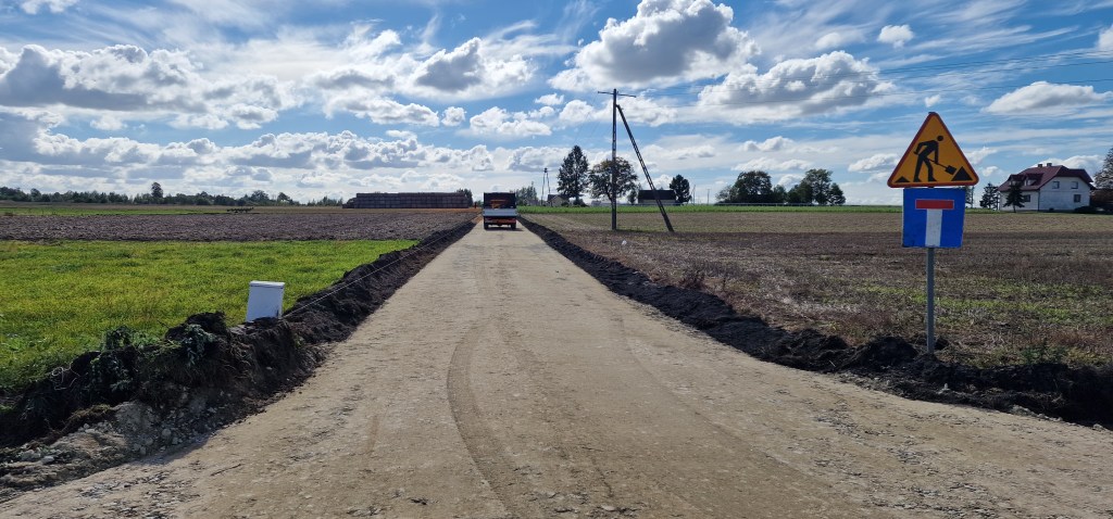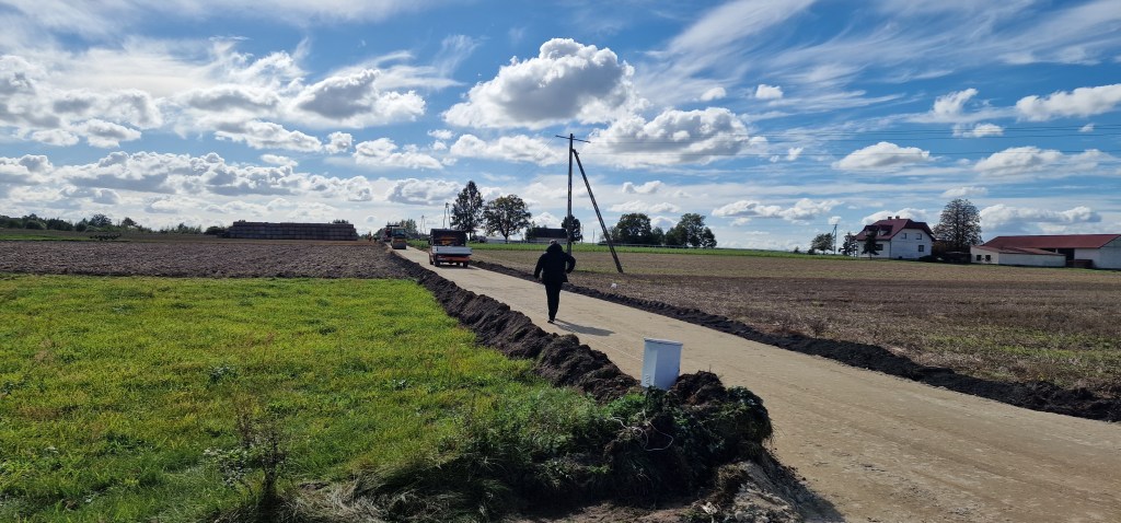 Aktualnie trwają prace związane z przebudową drogi wewnętrznej dojazdowej do gruntów rolnych w miejscowości Okalew o długości niecałych 650 metrów.
