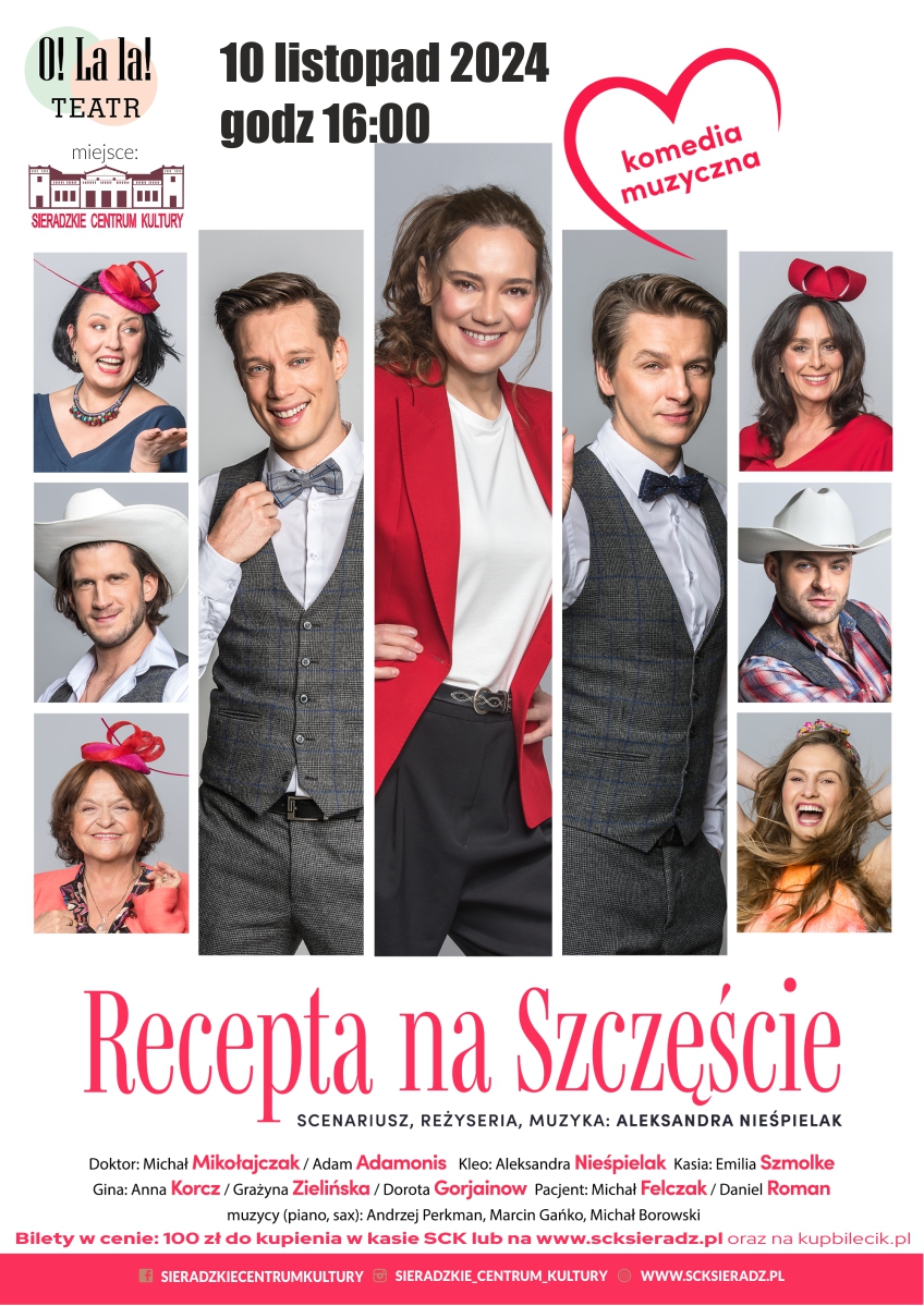 Sieradzkie Centrum Kultury zaprasza na spektakl pt. „Recepta na szczęścia”, który odbędzie się w niedzielę 10 listopada o godz. 16:00 w Teatrze Miejskim.