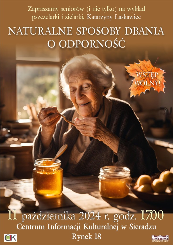 Wykład „Naturalne sposoby dbania o odporność” odbędzie się w piątek 11 października o godz. 17.00 w Centrum Informacji Kulturalnej w Sieradzu (Rynek 18). Wstęp wolny.