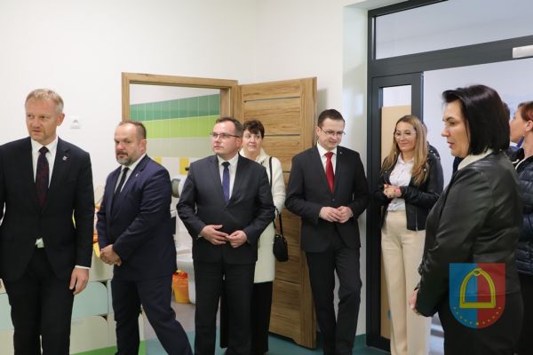 Po przecięgu wstęgi i poświęceniu obiektu, zaproszeni goście i wszyscy zebrani udali się do wnętrza Klubu dziecięcego i przedszkola. Podczas zwiedzania budynku zaprezentowano wyposażenie zaplecza kuchennego, stołówki, sanitariatów, części administracyjnej, dwóch sal opiekuńczych dla najmłodszych dzieci wraz z sypialnią, dwa pomieszczenia dla przedszkolaków, salę sensoryczną, plac zabaw oraz system ogrzewania i klimatyzacji.