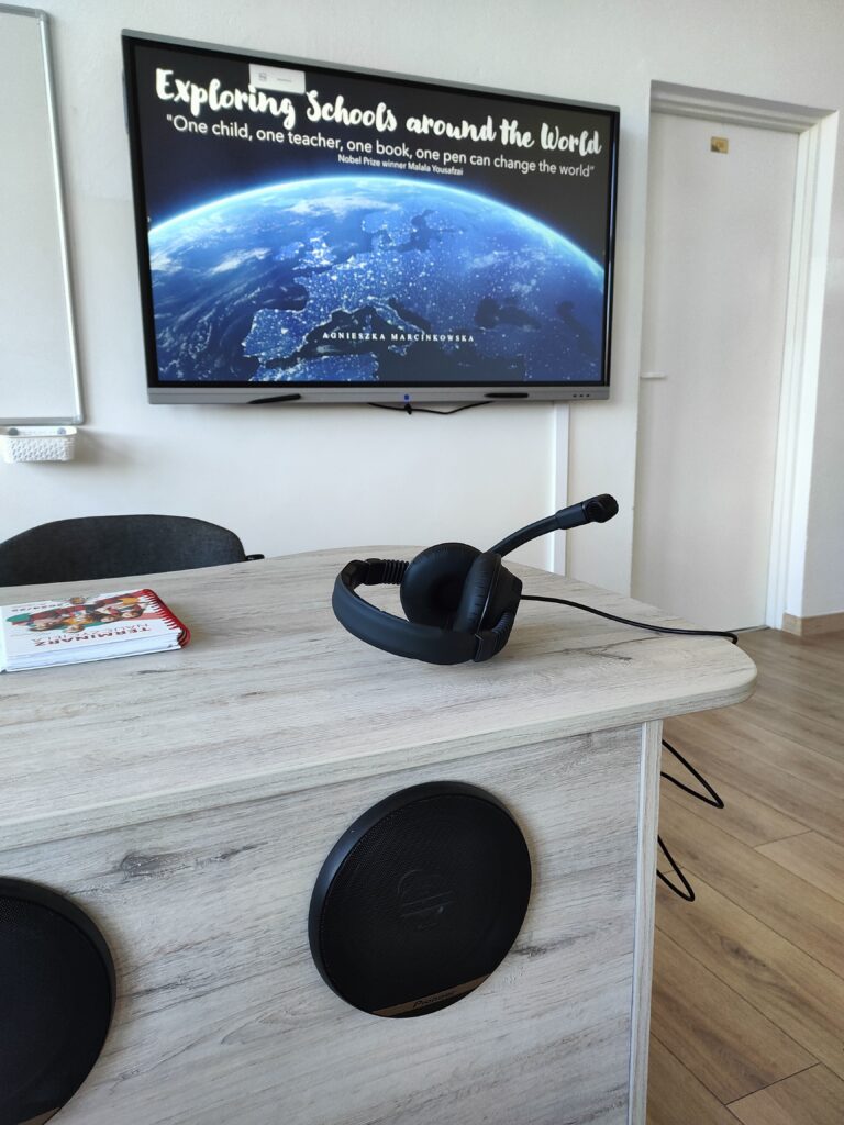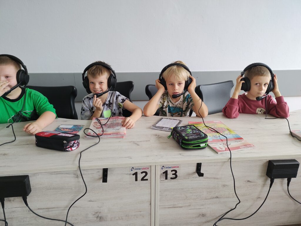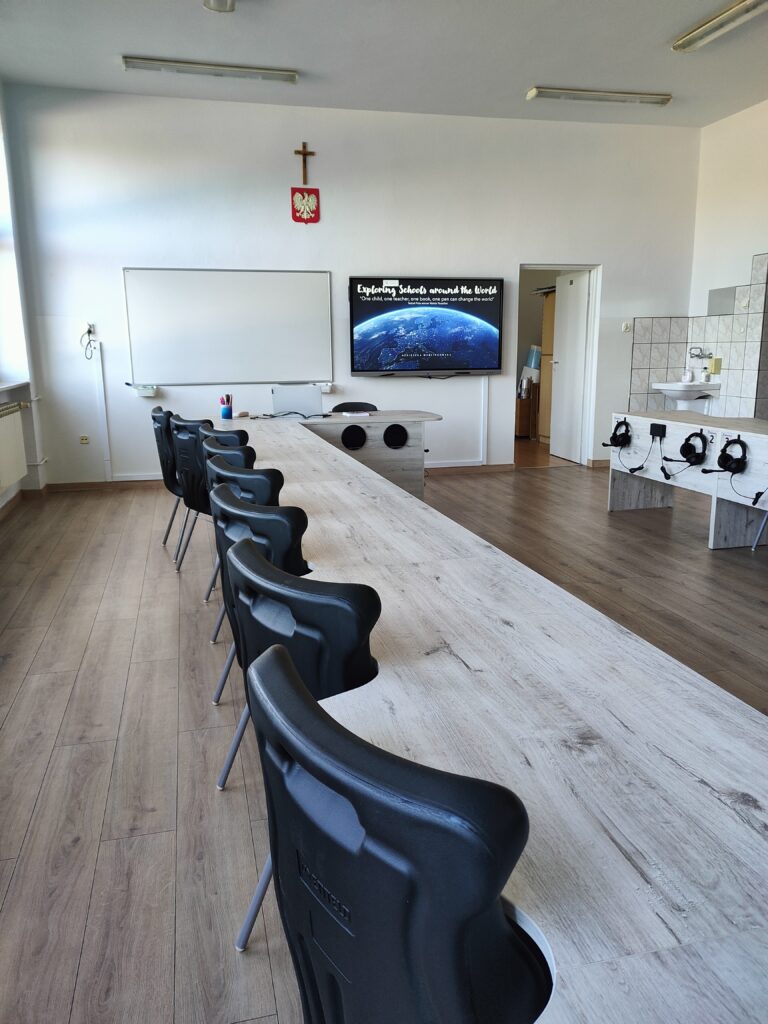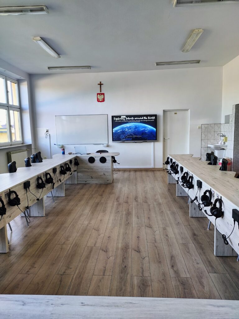 Celem projektu pn.: „Pracownia językowa naszym oknem na świat” jest zapewnienie uczniom realizacji podstawy programowej z języka angielskiego i niemieckiego z wykorzystaniem technologii informacyjnej i komunikacyjnej, a tym samym rozwijanie kompetencji kluczowych na najwyższym poziomie. Pracownia językowa InterAktin, wyposażona w słuchawki, ergonomiczne stoliki i krzesła uczniowskie, służyć będzie nie tylko doskonaleniu wymowy, ale zapewnia komfort nauki i pozwala wszystkim uczniom na zsynchronizowaną pracę w nowoczesnym laboratorium językowym. Stosowane rozwiązania oraz technologie pozwalają na stworzenie dowolnych konfiguracji par oraz grup konwersacyjnych.