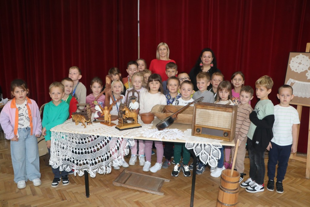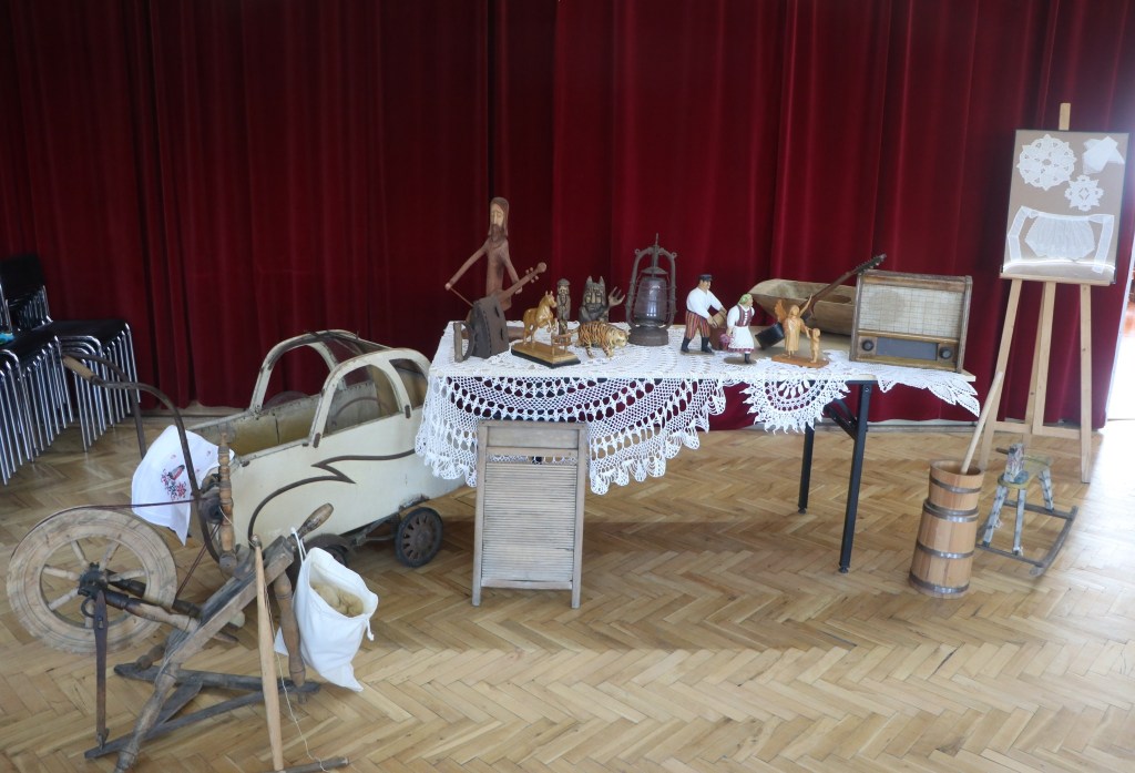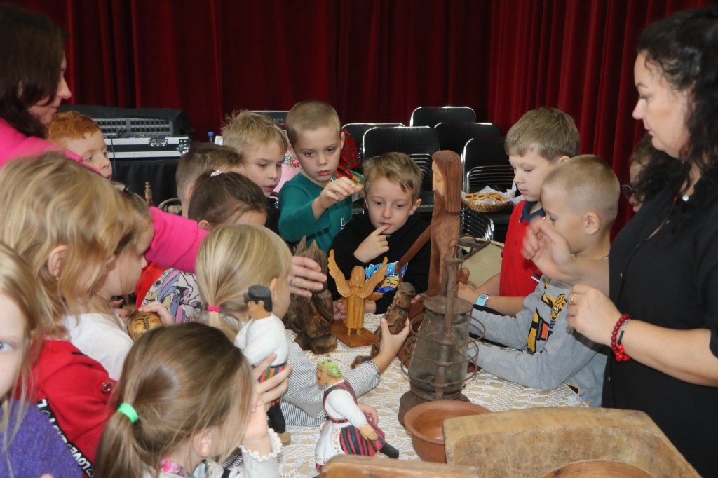 Dzieci obejrzały również stoisko z eksponatami z Izby Pamięci i mogły popodziwiać prace twórców ludowych, oraz przekonać się jak ciężkie jest żelazko z duszą.