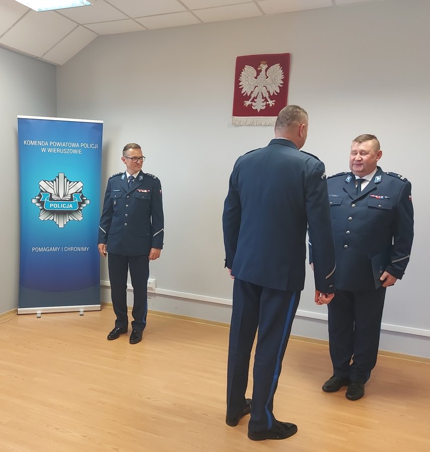 W auli wieruszowskiej jednostki 25 października o godzinie 12:00 odbyła się uroczystość powierzenia obowiązków I Zastępcy Komendanta Powiatowego Policji w Wieruszowie. Podczas uroczystego spotkania został odczytany rozkaz Komendanta Wojewódzkiego Policji w Łodzi inspektora Arkadiusza Sylwestrzaka, który powierzył obowiązki na stanowisku I Zastępcy Komendanta Powiatowego Policji w Wieruszowie podinspektorowi Pawłowi Mosce. W uroczystości brał udział Zastępca Komendanta Wojewódzkiego Policji w Łodzi inspektor Andrzej Patrzałek, Komendant Powiatowy Policji w Wieruszowie inspektor Grzegorz Dzierzkowski, kierownictwo oraz pracownicy jednostki. Komendant pogratulował awansu podinspektorowi Pawłowi Mosce, życząc mu sukcesów na nowo objętym stanowisku.