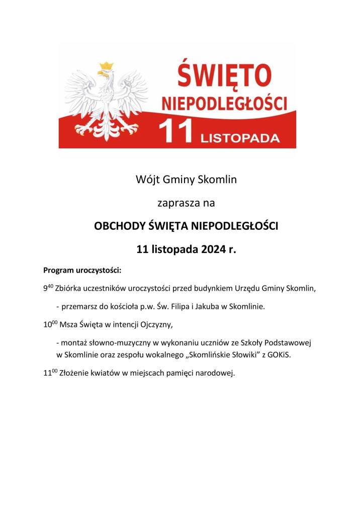 W niedzielę, 10 listopada uczci święto gmina Klonowa. Uroczystości rozpoczną się mszą o godz. 12.30 w kościele parafialnym w Klonowej. O godz. 17.30 ognisko patriotyczne na parkingu przy urzędzie gminy. W programie występy zespołów z ośrodka kultury i chóru Zespołu Szkół w Klonowej.