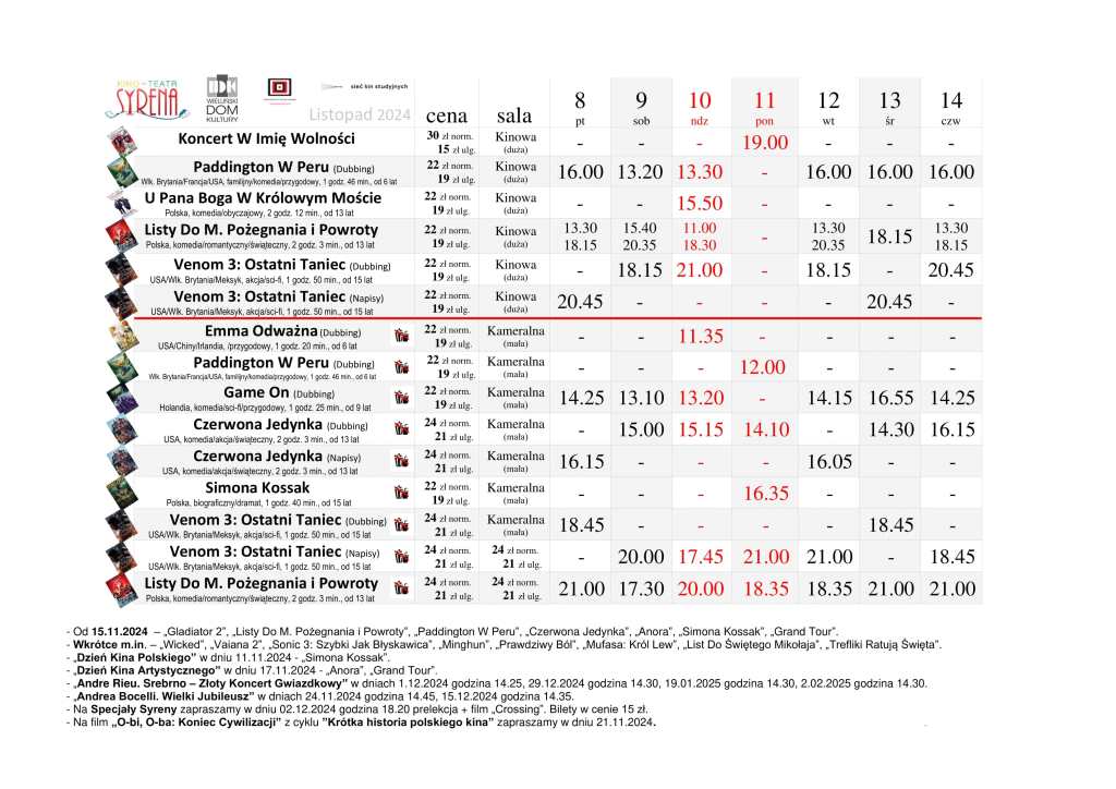 Kino Teatr „Syrena” w Wieluniu zaprasza na seanse filmowe. Na plakacie poniżej prezentujemy, co placówka przy ul. Narutowicza 2 zaprezentuje w dniach od 8 do 14 listopada. Bilety można zakupić TUTAJ.