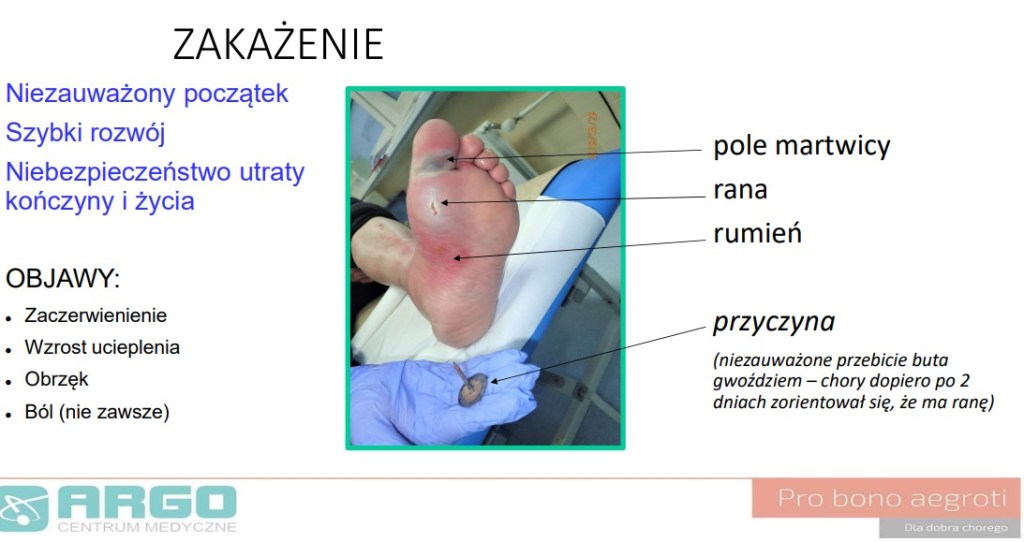 Tydzień Świadomości Stopy Cukrzycowej jest to akcja ogólnoświatowa. W Polsce organizuje ją Polskie Towarzystwo Leczenia Ran. Podczas tego tygodnia uświadamiamy, jak poważne jest ryzyko rozwinięcia stopy cukrzycowej. Co 4. cukrzyk będzie miał problem z owrzodzeniami na stopie. To choroba nieuleczalna, a rany, choć można zagoić, mają olbrzymią tendencję do odnawiania się. Warto skorzystać i umówić się na bezpłatne badania i edukację, w gabinetach, które biorą udział w akcji – dr n. med. P. Lipiński chirurg, Polskie Towarzystwo Leczenia Ran