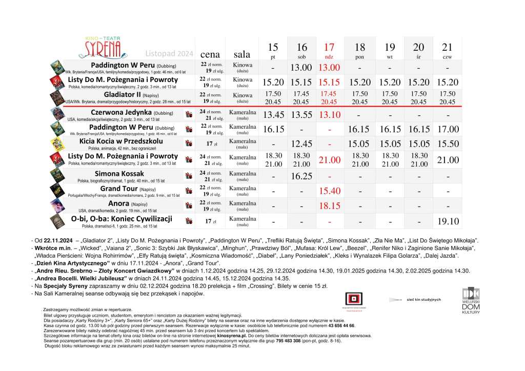Kino Teatr „Syrena” w Wieluniu zaprasza na seanse filmowe. Na plakacie poniżej prezentujemy, co placówka przy ul. Narutowicza 2 zaprezentuje w dniach od 15 do 21 listopada. Bilety można zakupić TUTAJ.