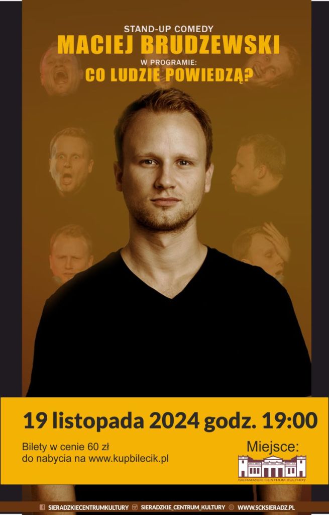 19 listopada (wtorek), godzina 19:00 – Stand-up Maciej Brudzewski w programie „Co ludzie powiedzą?”