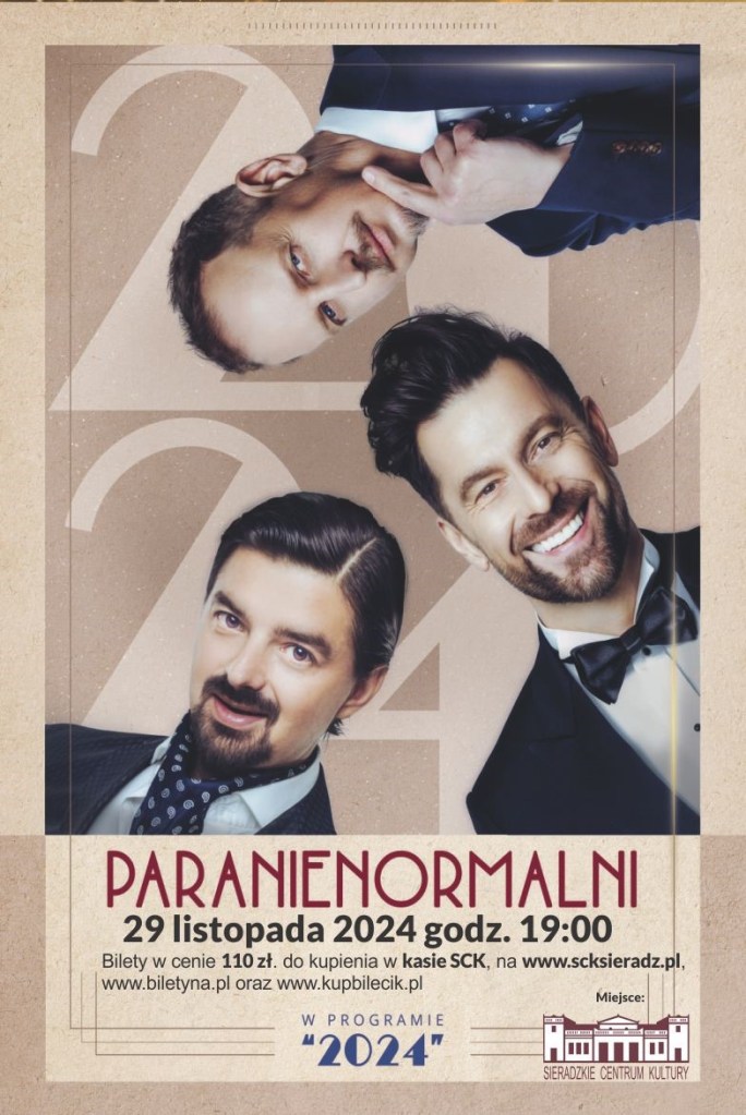 Najnowszy program kabaretu Paranienormalni jest stworzony z myślą o 2024 roku. Czas biegnie bez litości, świat się zmienia w galopującym tempie i nikt nie jest w stanie go dogonić. Humor to specyficzna ludzka moc która pomaga spoglądać pogodnie na przyszłość, oswoić teraźniejszość i cieszyć się z przeszłości. Improwizujemy z teraźniejszością, tęsknimy za przeszłością. Chcemy się określić wobec przyszłości. Z tych wszystkich emocji zbudowany jest najnowszy program kabaretu Paranienormalni pt 2024. Powraca dobrze znany widzom i mocno zdziwiony rzeczywistością doctor Prozac, a wraz z nim wiele surrealistycznych wątków z życia wziętych. Widzowie zobaczą polskie kino od kuchni, amerykańskie od frontu i przekonają się jak się robi show w telewizji. Bez polityki, seksu i religii. Paranienormalni zapraszają do swojego świata, w którym znajdziesz bezpieczne miejsce dla siebie. Nowy program 2024 to prawie 2 godzinny spektakl w którym uczestniczysz od pierwszych minut. To kabaretowa mieszanka w najlepszym paranienormalnym stylu.