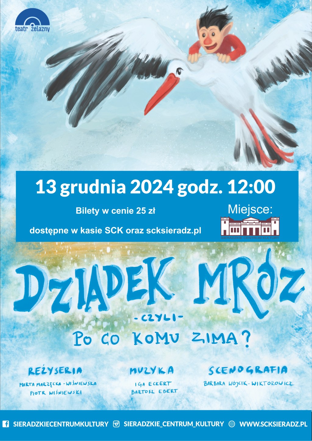 Piątek 13-tego wcale nie musi być pechowy – przekonuje Sieradzkie Centrum Kultury. SCK zaprasza na wyjątkowy, ZIMOWY spektakl dla dzieci „Dziadek Mróz” w wykonaniu Teatru Żelaznego z Katowic.