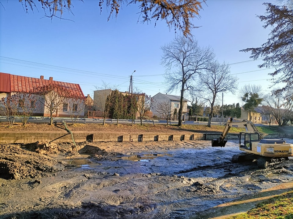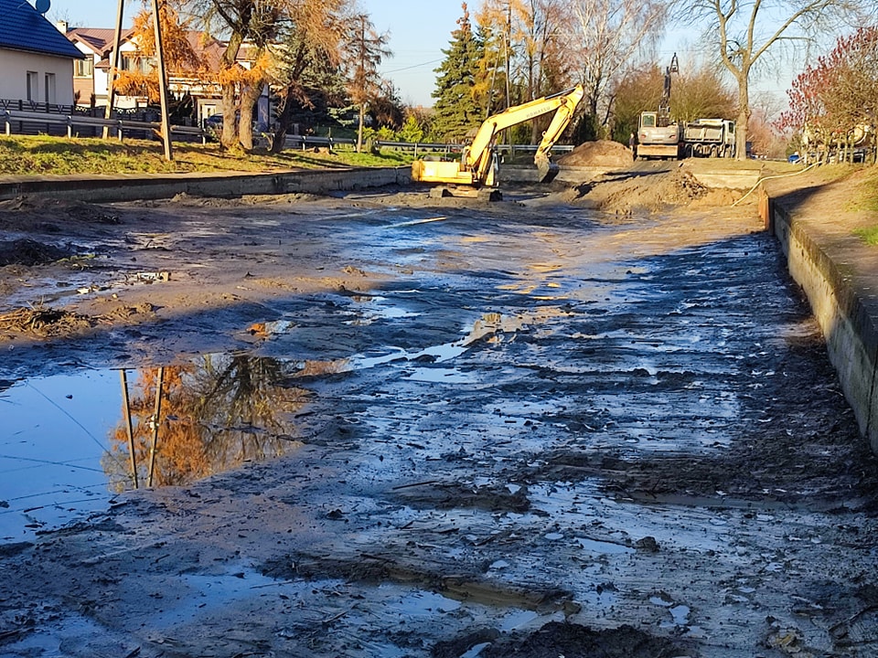 Trwają prace przy rewitalizacji stawu retencyjnego w Sołectwie Dąbrowa (gm. Wieluń).
