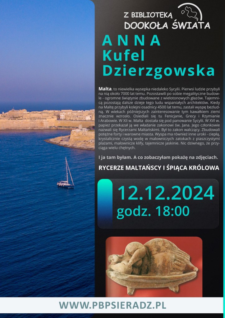 12 grudnia po raz kolejny w Powiatowej Bibliotece Publicznej zagości Anna Kufel-Dzierzgowska, zabierając w podróż po malowniczej Malcie – wyspie Morza Śródziemnego.