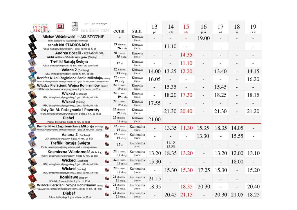 Kino Teatr „Syrena” w Wieluniu zaprasza na seanse filmowe. Na plakacie poniżej prezentujemy, co placówka przy ul. Narutowicza 2 zaprezentuje w dniach od 29 listopada do 5 grudnia. Bilety można zakupić TUTAJ.
