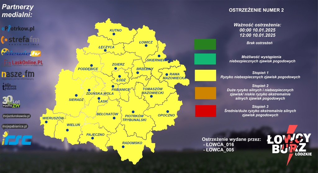 Ostrzeżenie obowiązuje od północy do jutra do godz. 12:00. Pamiętajcie, by zachować ostrożność.