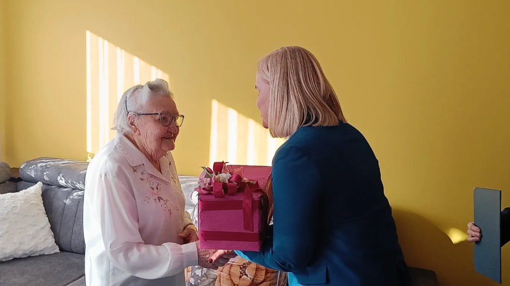 Życzenia dobrego zdrowia, wszelkiej pomyślności i pogody ducha na dalsze lata życia złożył Jacek Olczyk, Wójt Gminy Pątnów, dołączając do życzeń bukiet kwiatów oraz upominek. Życzeń, upominków oraz pięknych bukietów kwiatów nie zabrakło również od Macieja Brysia, Starosty Wieluńskiego. Gratulacje i życzenia złożyli osobiście: Grzegorz Pietrzyński – Przewodniczący Rady Gminy Pątnów, Iwona Napieraj – Sekretarz Gminy Pątnów oraz Dorota Kula – Kierownik Urzędu Stanu Cywilnego w Pątnowie. Był również tort, słodki poczęstunek oraz gromkie ,,200 lat”.