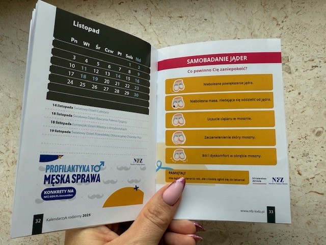 Znajdziemy w nim informacje o programach profilaktycznych NFZ, listę badań, na które może skierować nas lekarz POZ, instruktaż samobadania piersi i nowość! instruktaż samobadania jąder. To ważne badanie powinien raz w miesiącu robić każdy pan.