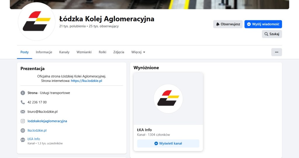 z kanału nadawczego ŁKA Info wystarczy wejść na fanpage Łódzkiej Kolei Aglomeracyjne