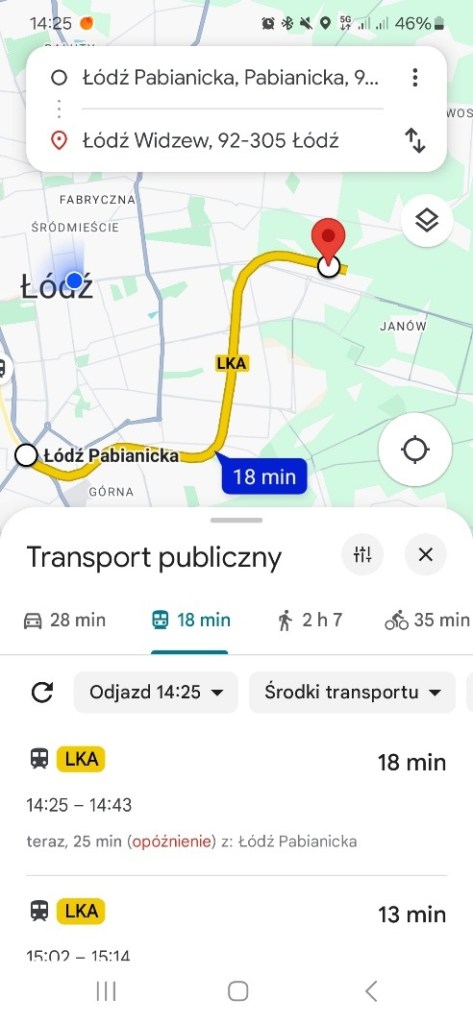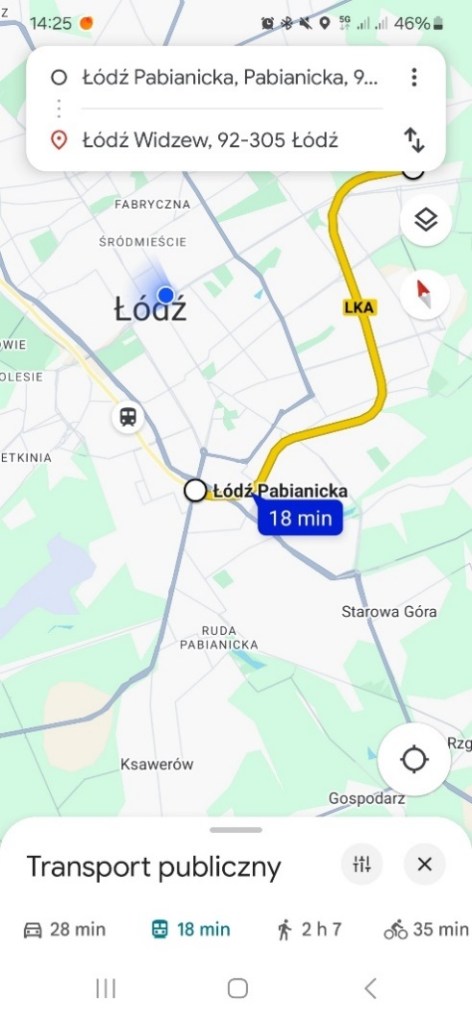 Technologicznych rozwiązań ŁKA jest więcej. Mimo że pociągi Łódzkiej Kolei Aglomeracyjnej niemal zawsze docierają na stację punktualnie, teraz pasażerowie mogą śledzić ich dokładną lokalizację i czas przyjazdu w aplikacji Google Maps. Wystarczy wpisać wybraną trasę, np. Łódź Pabianicka – Łódź Widzew i sprawdzić, gdzie obecnie znajduje się dany pociąg. Ważne, by na etapie wyszukiwania, zaznaczyć w szczegółach mapy opcję Transport Publiczny.