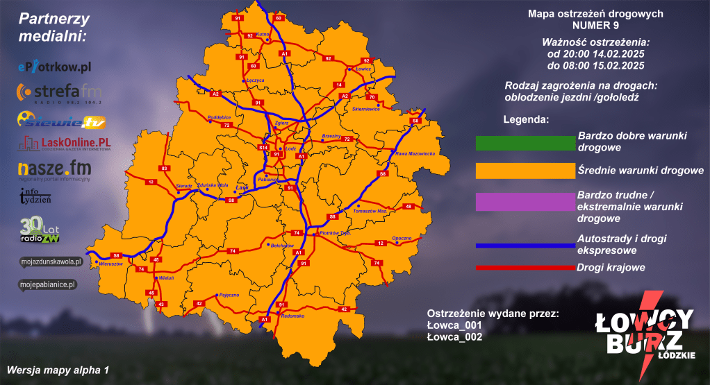 To kolejny dzień ostrzeżeń przed oblodzeniem jezdni i gołoledzią. Grupa Łowcy Burz Łódzkie ostrzega przed średnimi warunkami na drogach. Ostrzeżenie dotyczy całego województwa łódzkiego – w tym powiatów: sieradzkiego, wieluńskiego i wieruszowskiego.